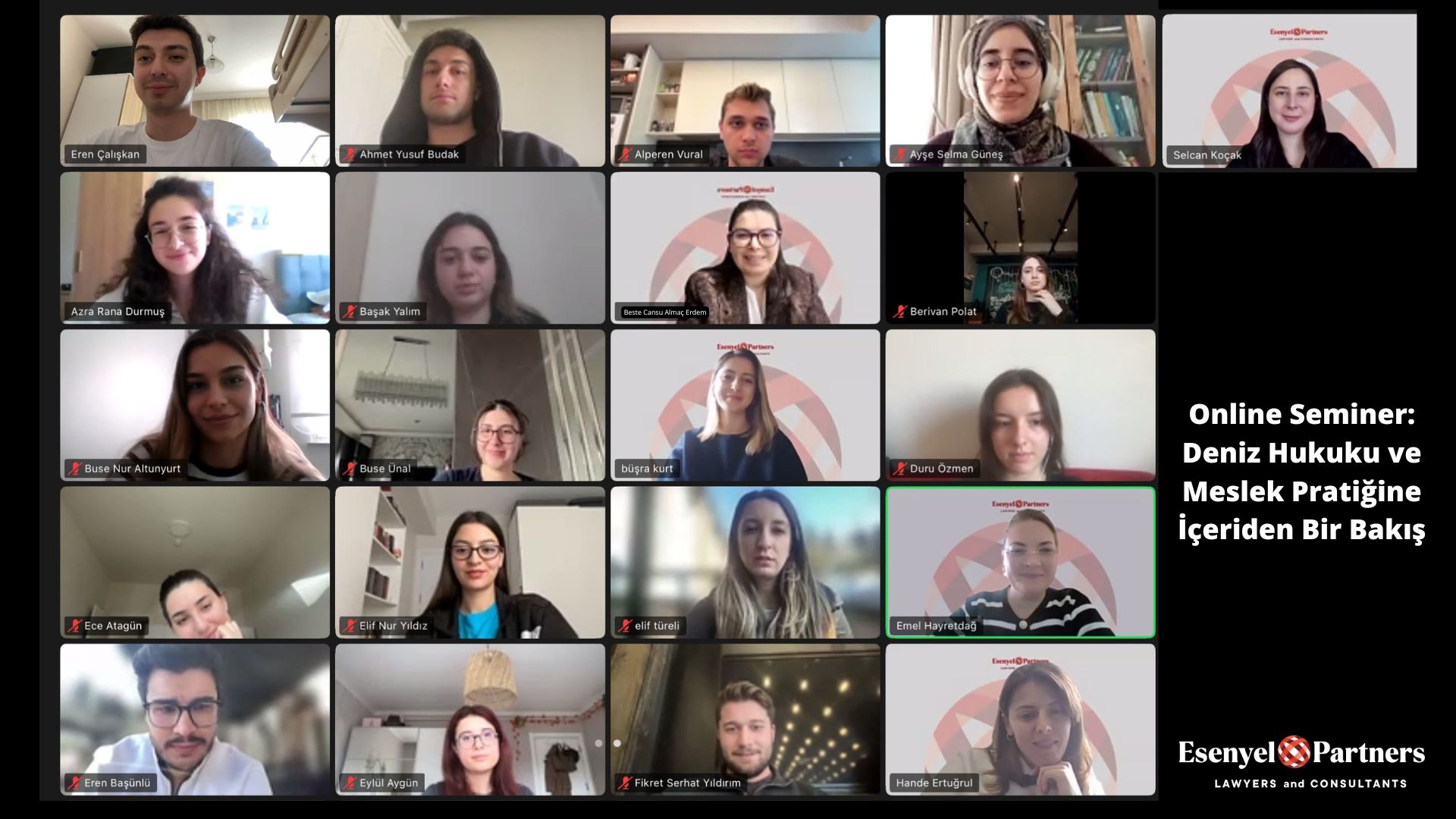 Bu vizyon doğrultusunda, Bilkent Üniversitesi Bilkent Law Community ve İstanbul Üniversitesi Hukuk Atölyesi Kulübü iş birliğiyle gerçekleştirdiğimiz online etkinlikte, deniz hukuku alanının inceliklerini ve bu alandaki avukatlık pratiğini derinlemesine ele aldık.
